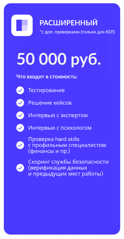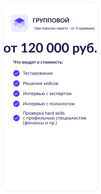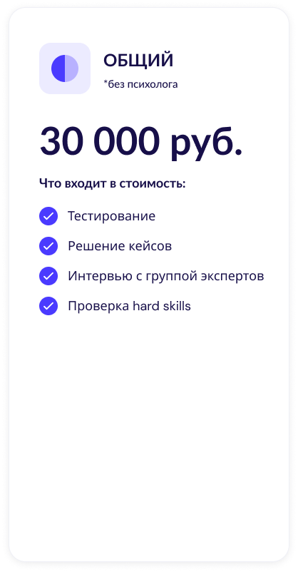 30+ тестов, 20 кейсов, оценка группой экспертов и психологическая оценка