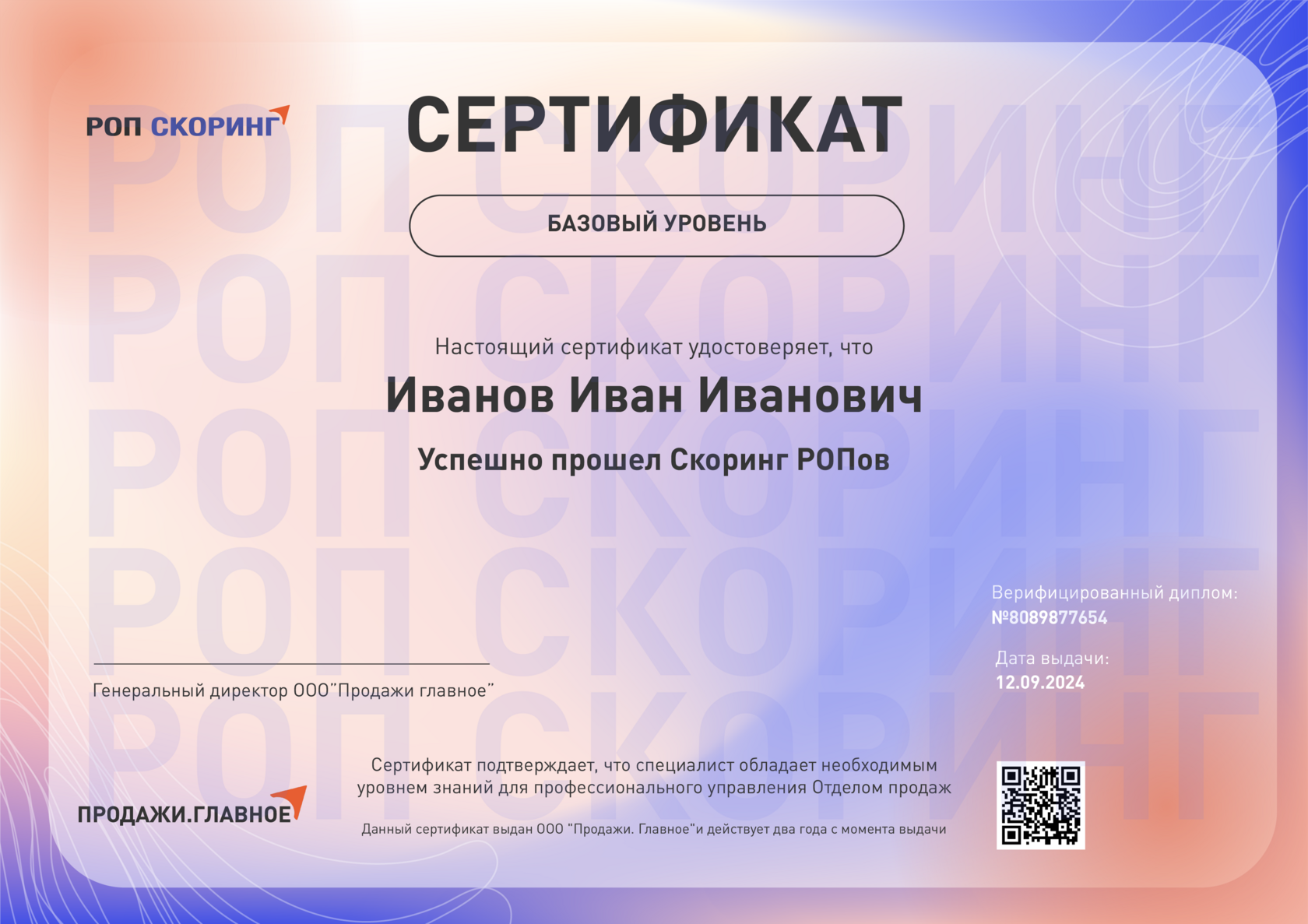 Сертификат не просто подтверждает профессионализм РОПа и уровень знаний, но и является официальным документом, уважаемым и признанным в отрасли.